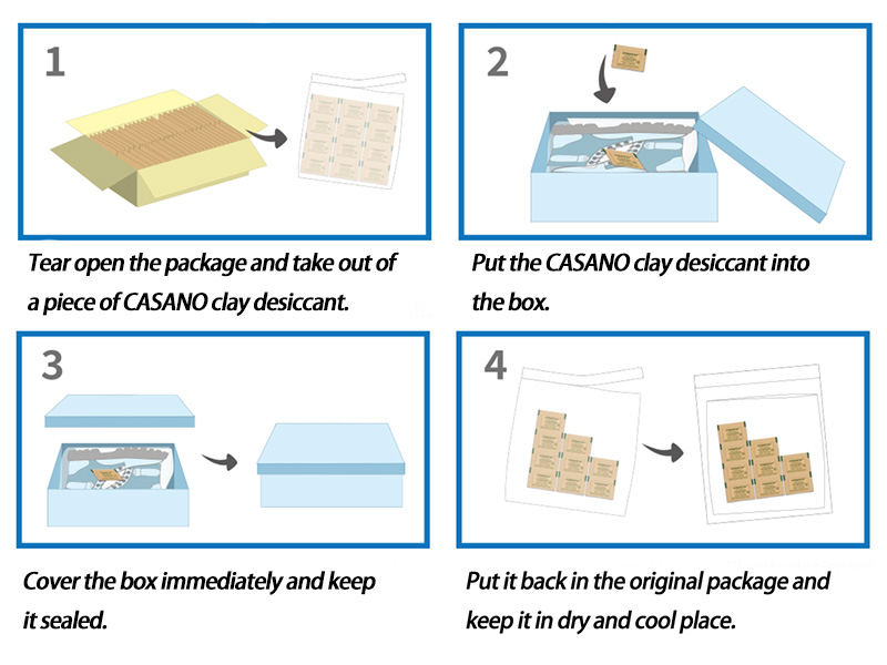 · CASANO clay desiccant is commonly used in electronics, metals, food, pharmaceuticals, footwear and luggage, and other fields requiring moisture-proof and drying solutions.